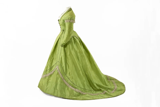 This 1865-1868 gown from Toronto Metropolitan University Fashion Research Collection apparently has tested positive for arsenic. Typically, those who wore green, or worked with it in their daily jobs, but were otherwise healthy were cursed only with a rash or some irritation, maybe the occasional oozing sore. However, many of the arsenic green items that have been tested, along with anecdotes and news stories, show us that many people died from exposure to the green dye during this period.