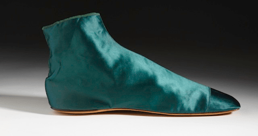 “Adelaide” satin boots colored with an arsenic-based dye, European (c.1840s) (Collection of the Bata Shoe Museum, photograph by Ron Wood)